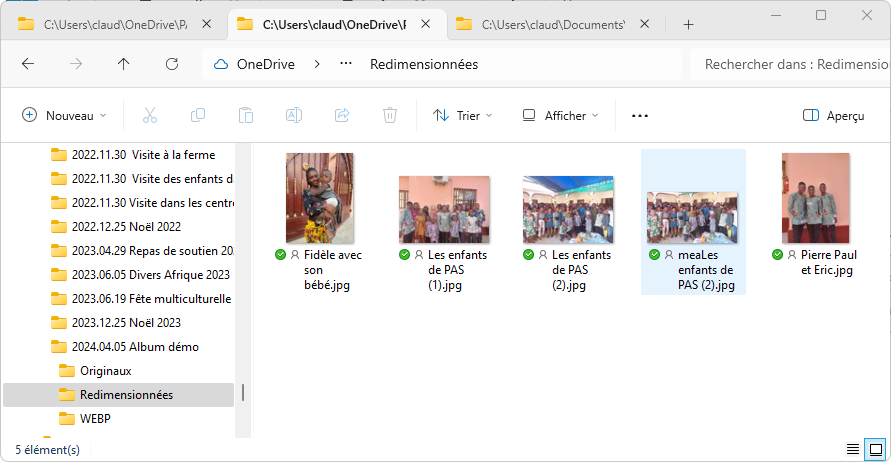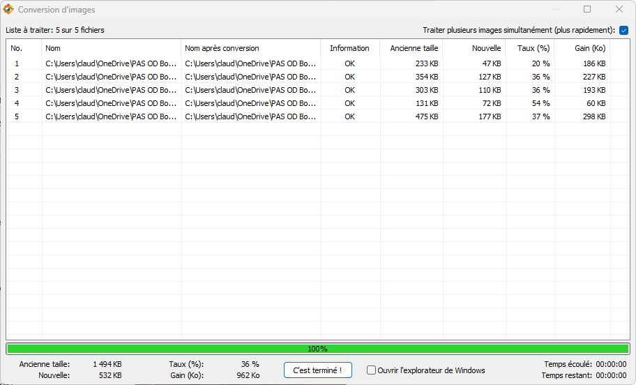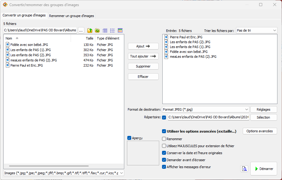 Choisir les fichiers à convertir (pas plus de 20 fichiers à la fois) dans le dossier Redimensionnées