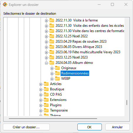 Cliquer sur le bouton Sélection et choisir le répertoire de destination