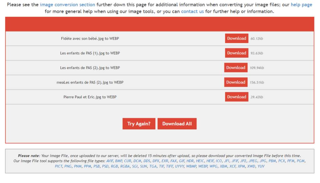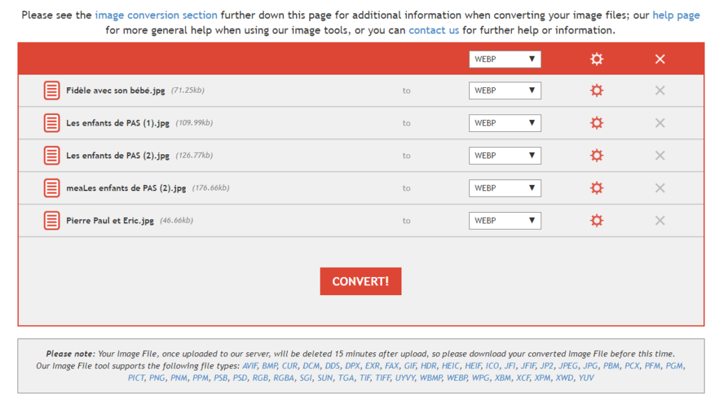 Convertir en les photos redimensionnées au format WEBP à l’aide de Fabconvert