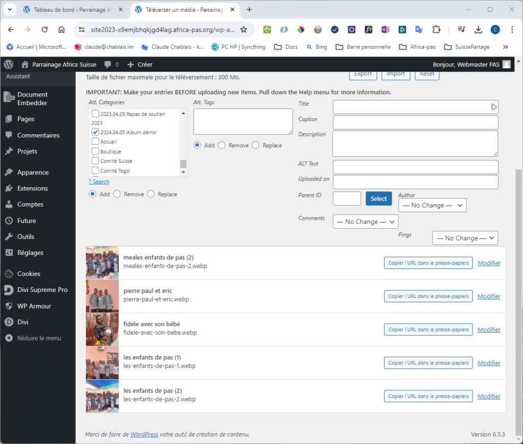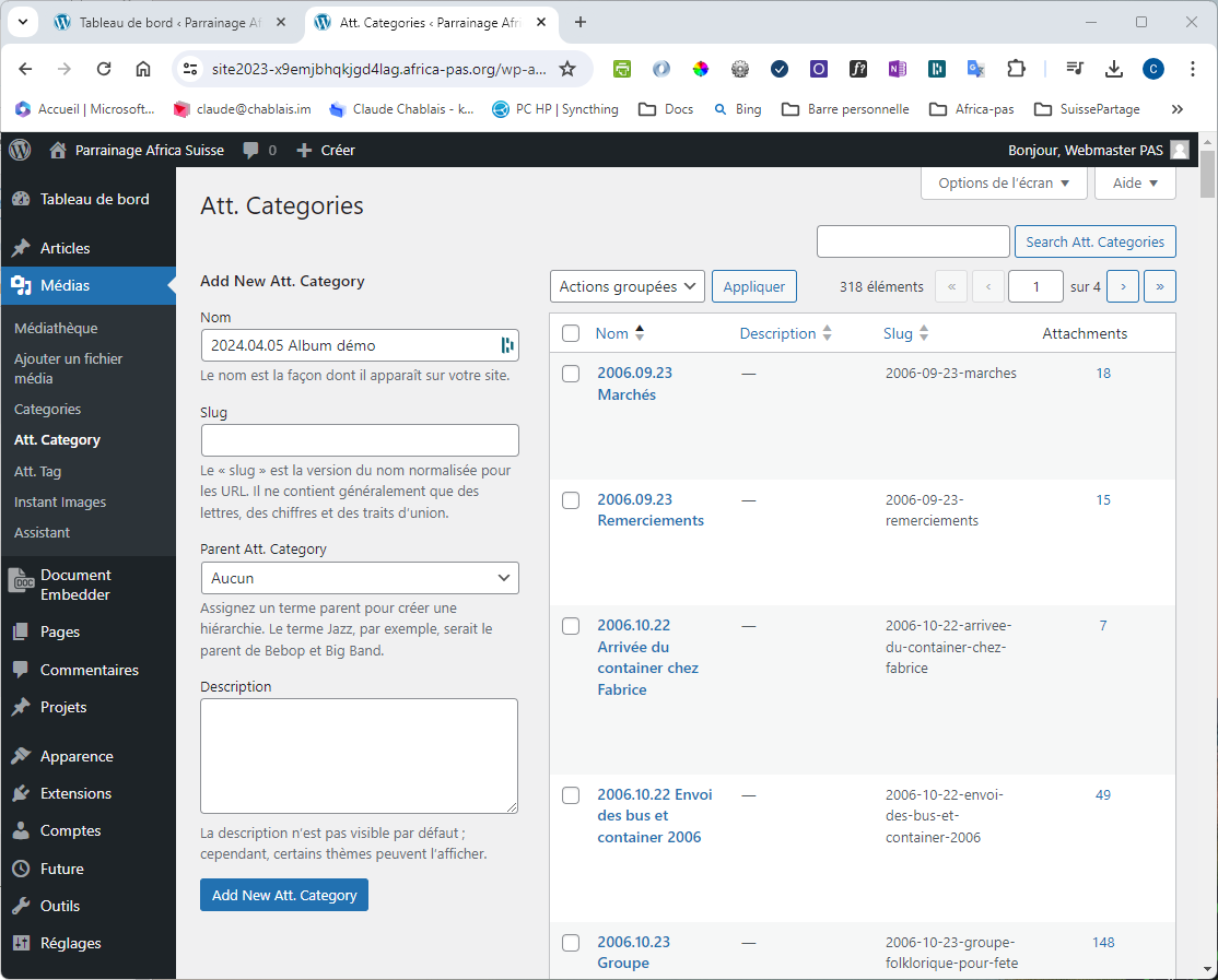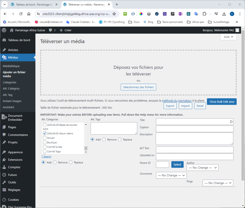 Dans le menu Médias | Att.Category ajouter le nom de l’album