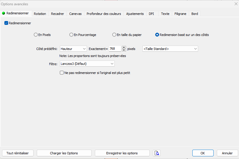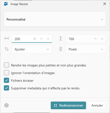 Régler les paramètres et cliquer sur le bouton Redimensionner