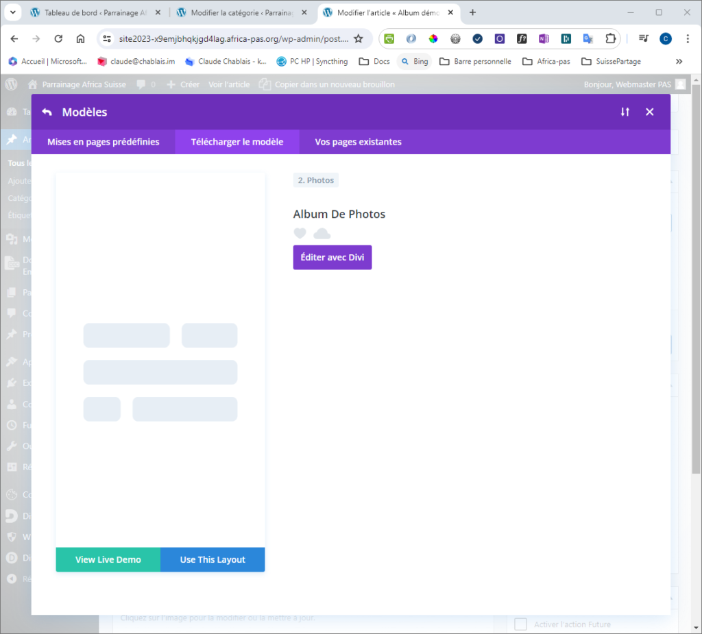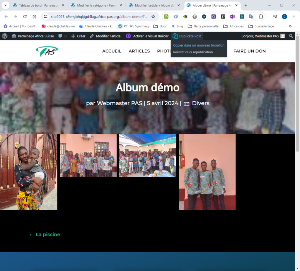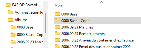 Dans le dossier PAS OD Bovard\Albums dupliquer le dossier 0000 Base