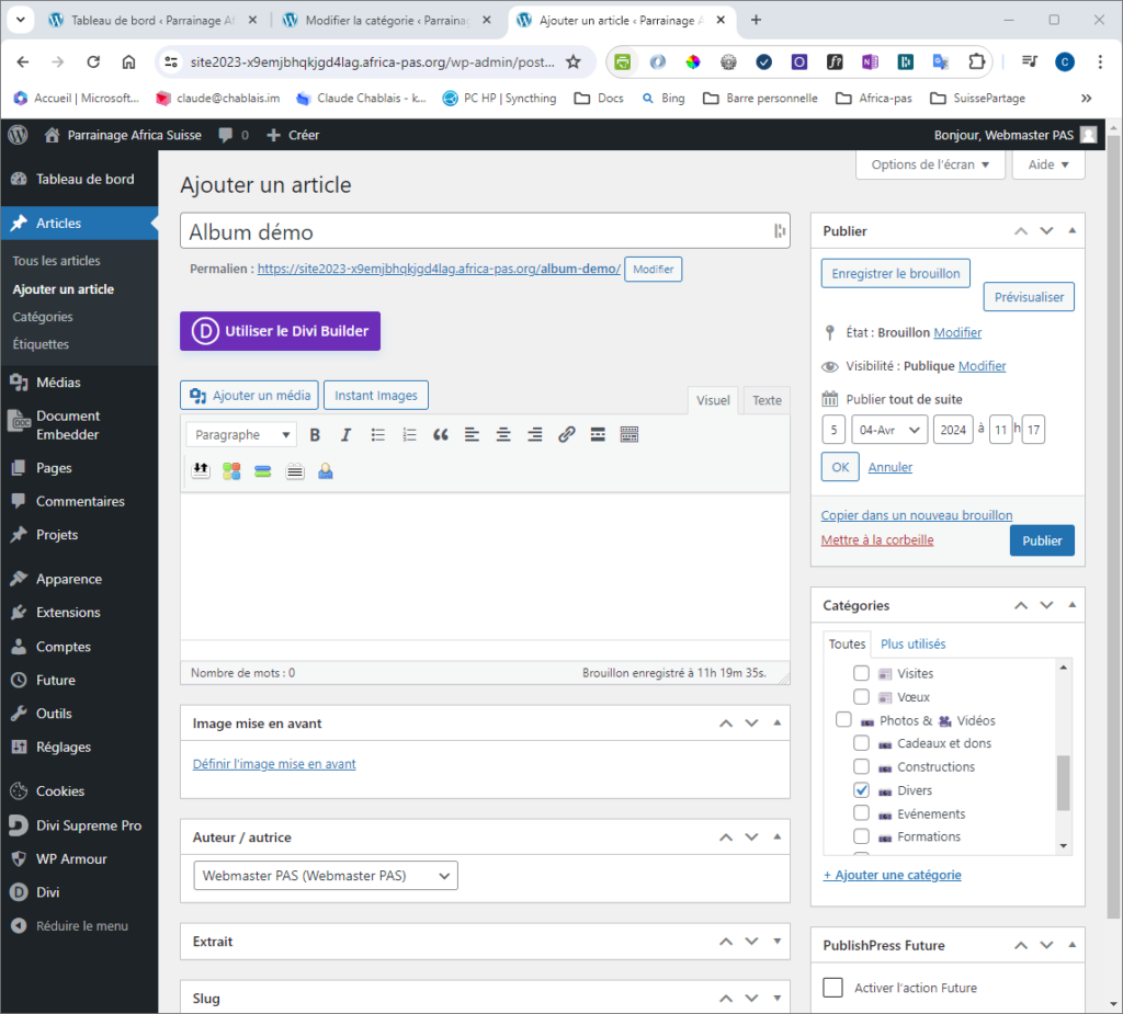 Saisir la date de publication (dans le champ Publier tout de suite): 2024.04.05