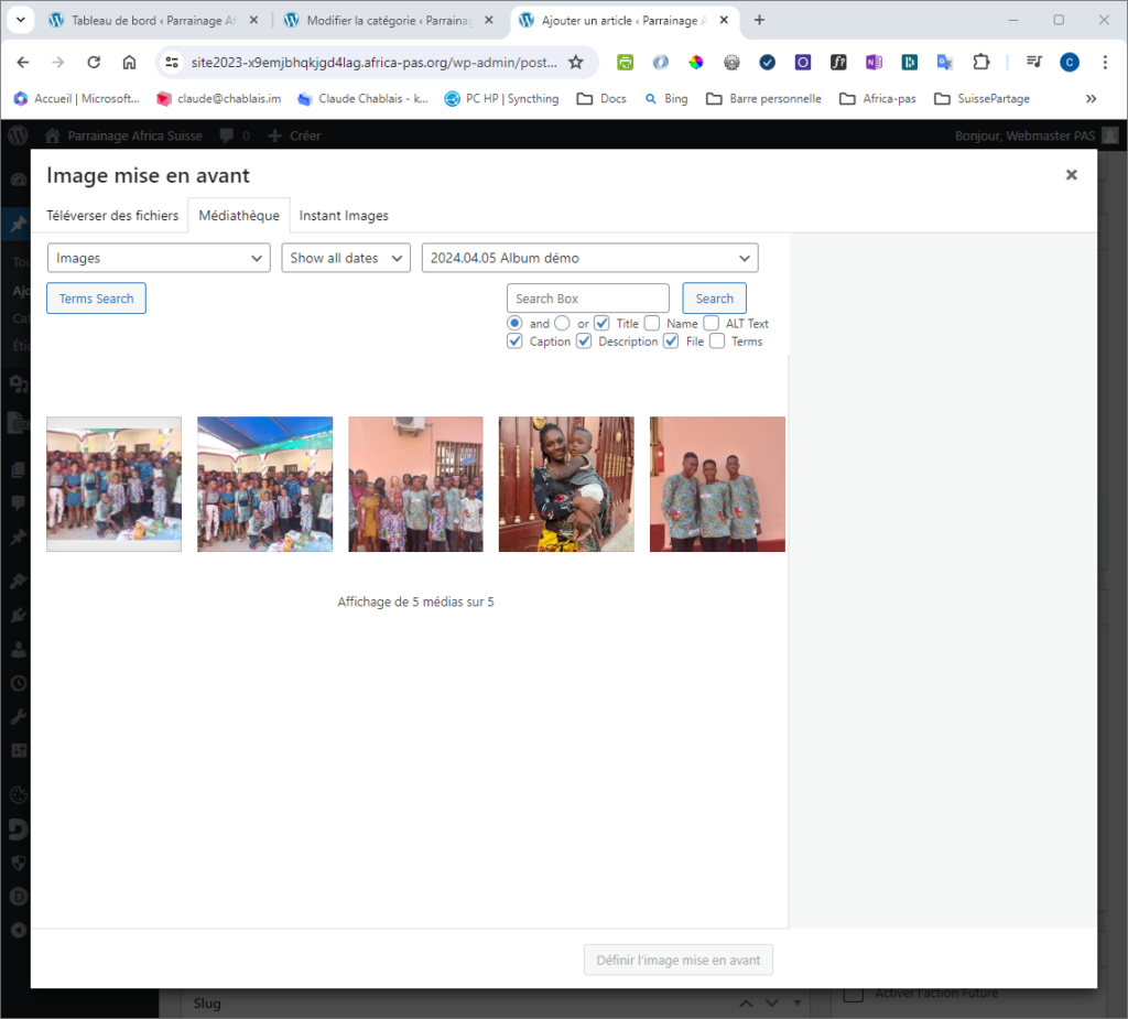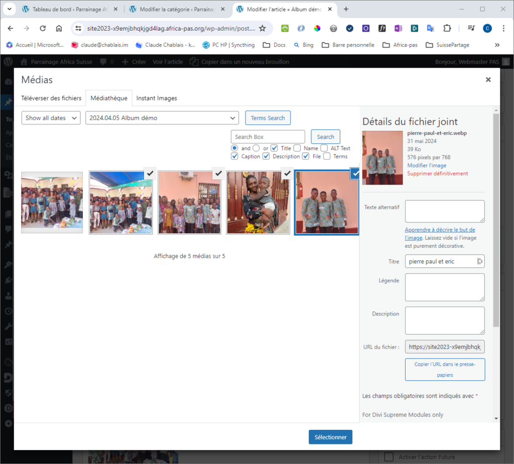 Sélectionner les images à publier et cliquer sur le bouton Sélectionner