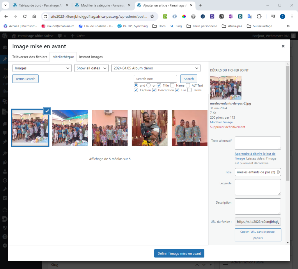 Choisir l’image qui sera mise en avant et double cliquer dessus