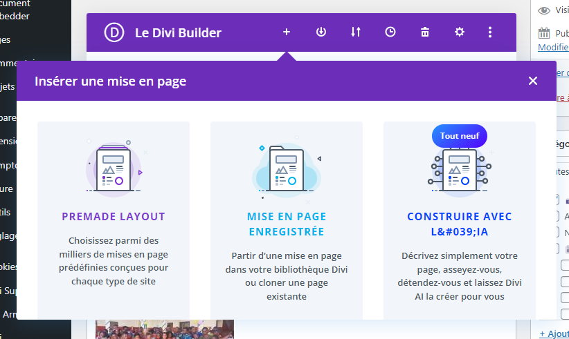 Cliquer sur le bouton + et choisir MISE EN PAGE ENREGISTREE